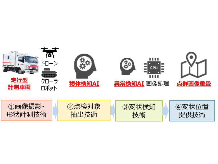 HOME | 活動成果 2026.02.26 イノベーション交流会 実証活動報告 3Dデータを活用した維持修繕工における施工・保全業務最適化 2026.02.26 イノベーション交流会 実証活動報告 ボルトの遠隔点検・変状解析技術 2025.11.26 イノベーション交流会 実証活動報告 休憩施設におけるゴミ堆積量調査 2025.11.26 イノベーション交流会 実証活動報告 路上空間認識技術における車両検知に関する検証 2025.09.24 イノベーション交流会 実証活動報告(部会名)視界不良時における遠隔モニタリング 2025.06.27 イノベーション交流会 実証活動報告AI活用による業務高度化 2025.04.21 イノベーション交流会 実証活動報告3次元データモデル活用による点検業務の高度化検証 2025.02.17 イノベーション交流会 実証活動報告防護柵支柱点検の効率化 2025.02.17 イノベーション交流会 実証活動報告センシングカー撮影データの精度検証 2025.02.14 イノベーション交流会 実証活動報告 規制作業オートメーションプラットフォーム構築 2023.11.29 イノベーション交流会 実証活動報告BIM・点群データを活用したメンテナンス管理支援 2023.05.09 イノベーション交流会 実証活動報告各種データ統合による業務効率化 2023.05.09 イノベーション交流会 実証活動報告3D化アプリを活用した点検業務の効率化 2022.06.09 イノベーション交流会 実証活動報告冬季路面のリスク管理による業務高度化 2022.01.12 イノベーション交流会 実証活動報告法面維持管理モニタリングの高度化実証部会~ 高速道路法面のGNSS計測による維持管理の高度化実証 ~ 2022.01.12 イノベーション交流会 実証活動報告お客さまの動向把握・分析の高度化 2021.09.29 イノベーション交流会 実証活動報告AI及び音声共有アプリを活用したコミュニケーション効率化 プレスリリースはこちら 2021.07.28 イノベーション交流会 実証活動報告点検ロボットによる橋梁点検業務の高度化・省力化 プレスリリースはこちら 2021.07.02 イノベーション交流会 実証活動報告路面変状把握の高度化・効率化に寄与する画像認識技術の実証 プレスリリースはこちら 2021.05.27 イノベーション交流会 実証活動報告橋梁床版内部の多角的分析による業務有効性の実証 プレスリリースはこちら 2021.02.26 イノベーション交流会 実証活動報告SNS 情報を活用した道路状況把握の迅速化 プレスリリースはこちら 2021.02.26 イノベーション交流会 実証活動報告蓄積データの可視化/分析結果の業務有効性の検証 プレスリリースはこちら